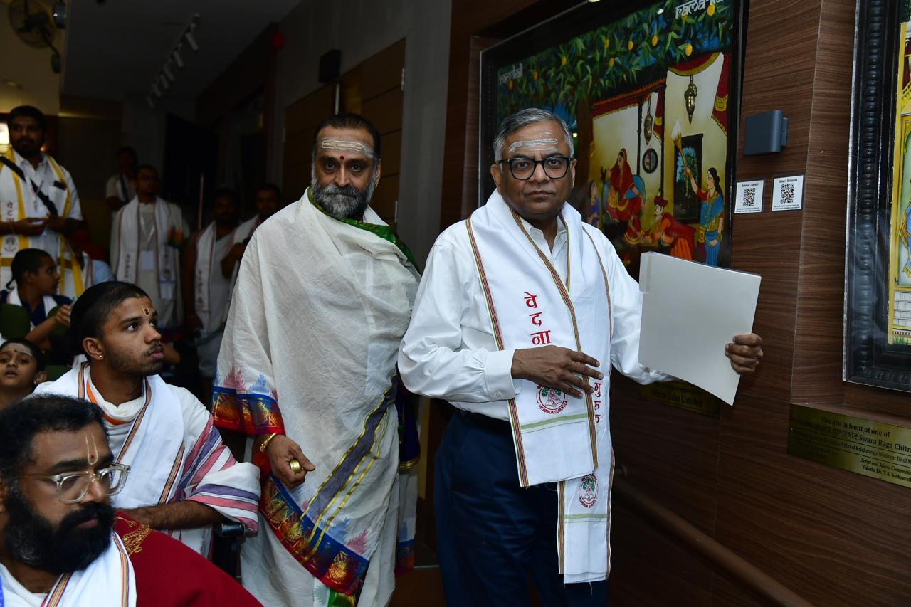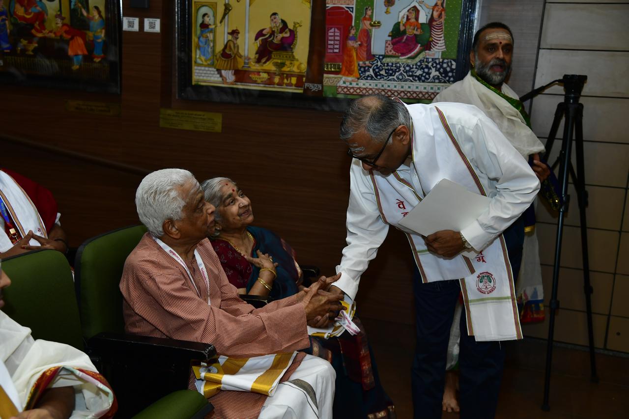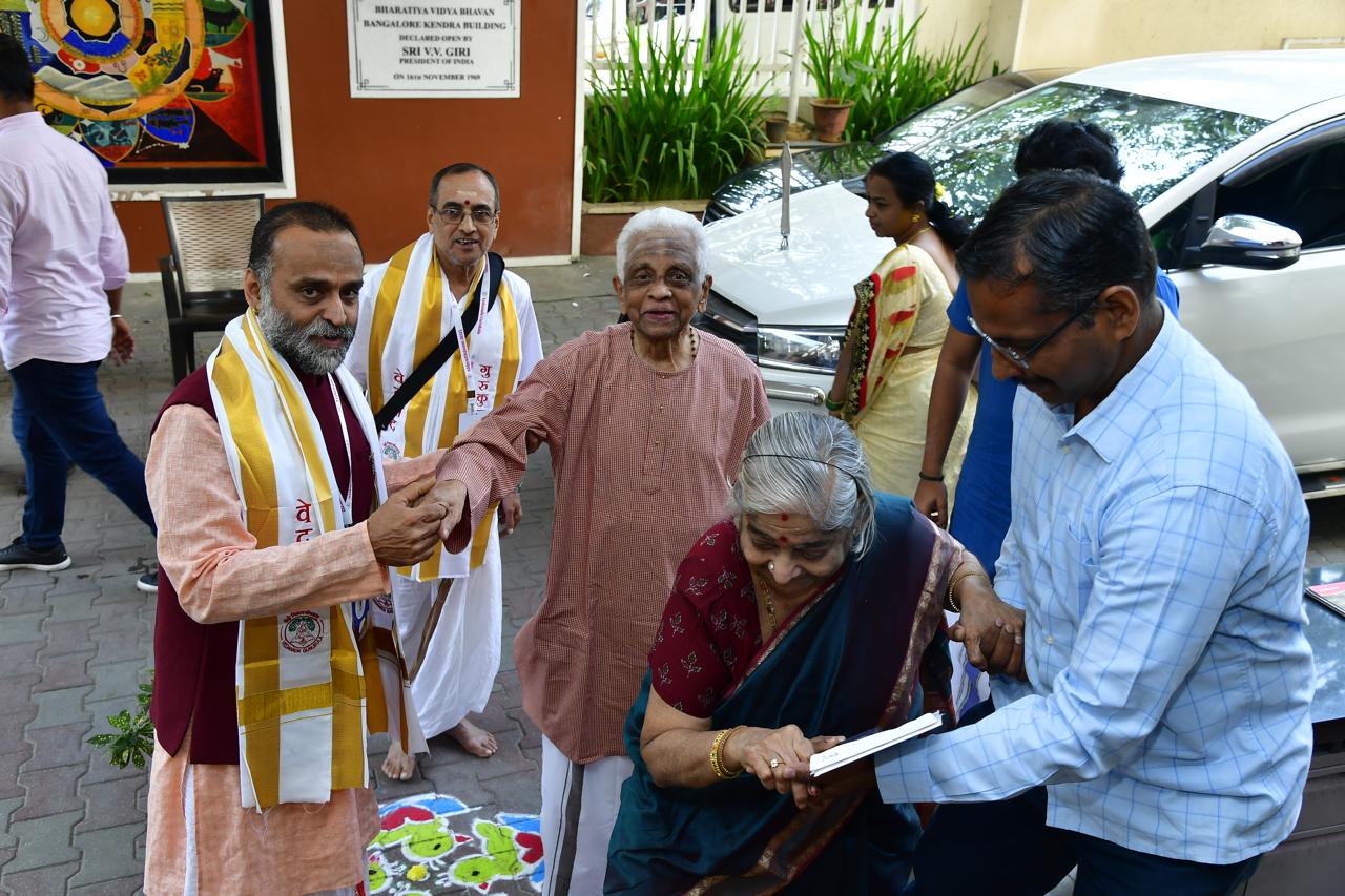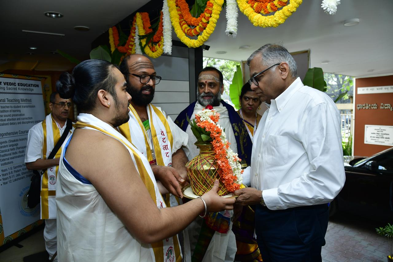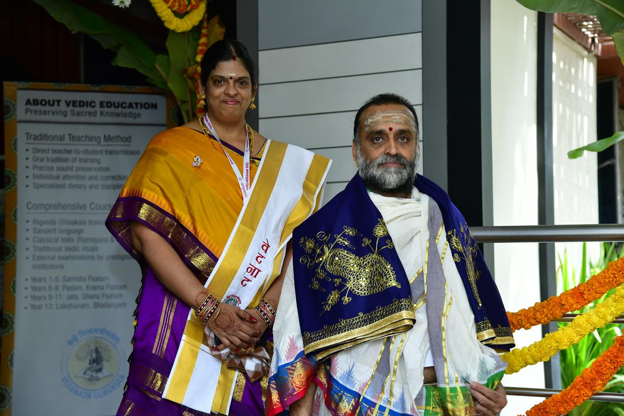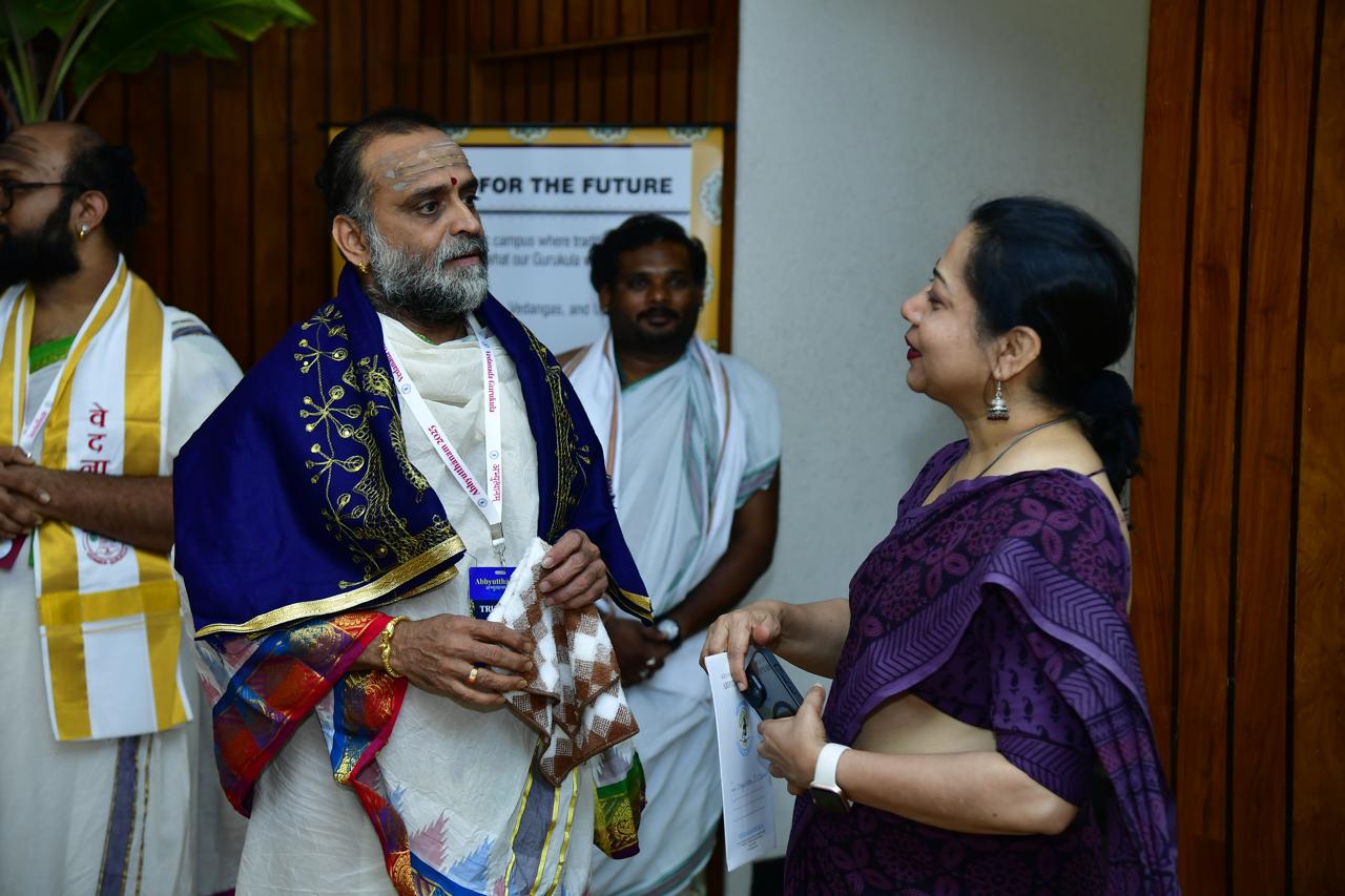 To acknowledge and reward the students of the Gurukula, a first of its kind Vedic Convocation Ceremony was held on May 15th, 2022 at Bharatiya Vidya Bhavan. The programme commenced with a beautiful musical performance by Neyveli Shri R Santhana Gopalan and group. This was followed by the welcoming of the chief guests on to the stage. The chief guests for the event were Hon. Smt. Nirmala Sitharaman, Finance Minister, Government of India, H.H. Yaduveer Krishnadatta Chamaraja Wadiar, Mysore, Prof. Sri. K.E.Devanathan, Vice-Chancellor, Sanskrit University, Karnataka. The convocation honoured 8 students in total of which 3 had completed 12 years at the Gurukula to attain the qualification of Ghanapaati. The event had speeches by the guests of honour and members of the Gurukula. Words of appreciation and encouragement were shared by the Chief Guest and concluded with a photo session of the students and guests of honour.