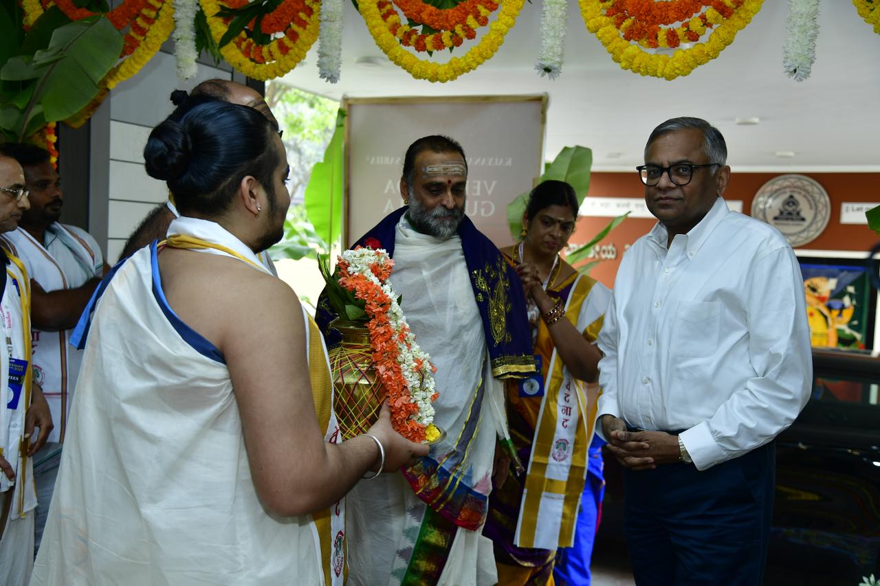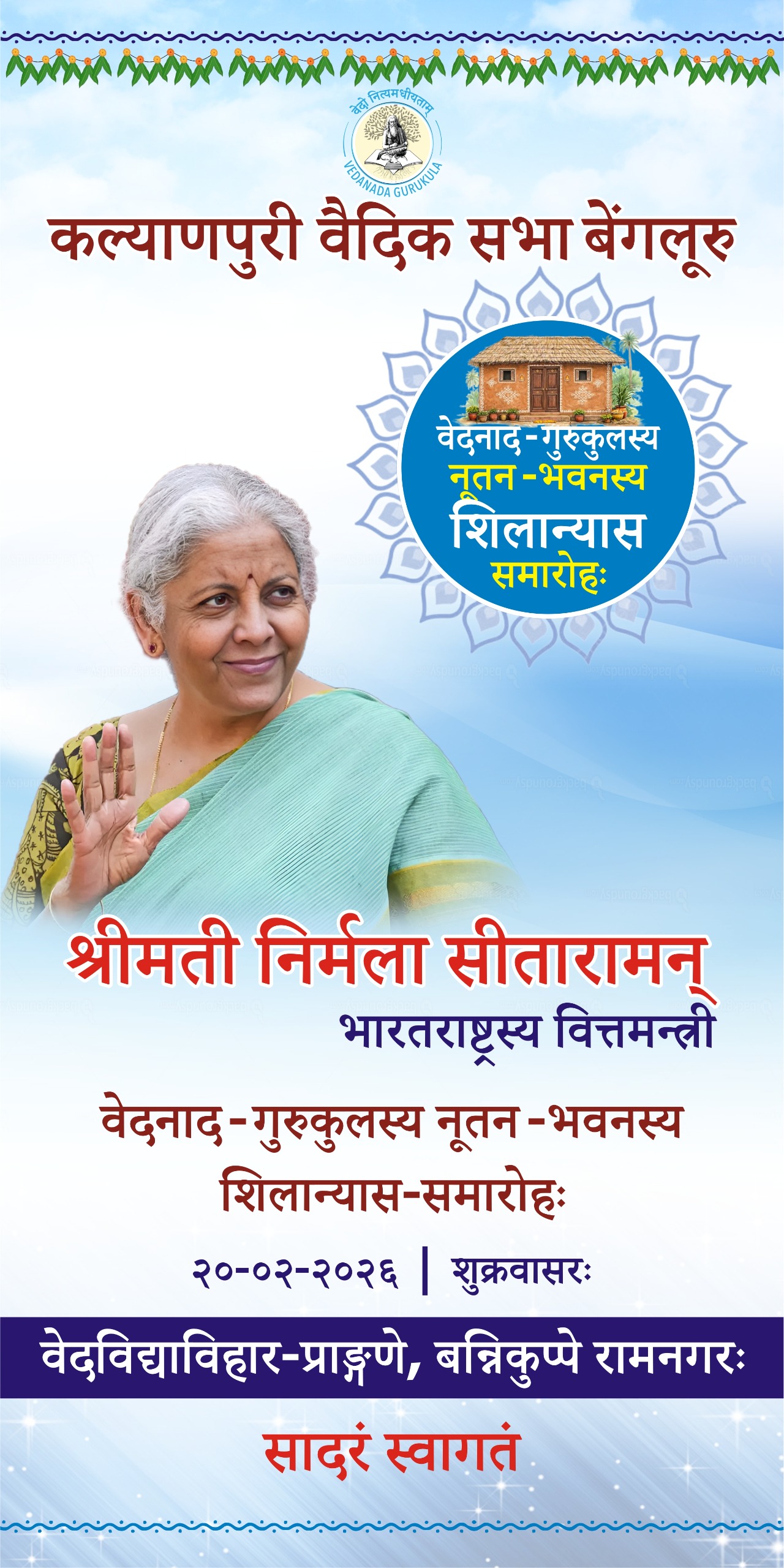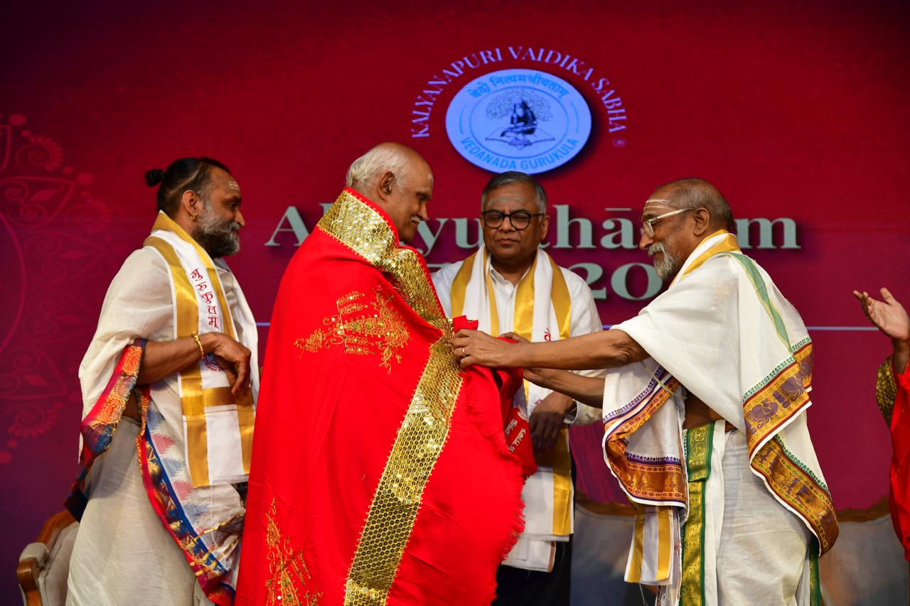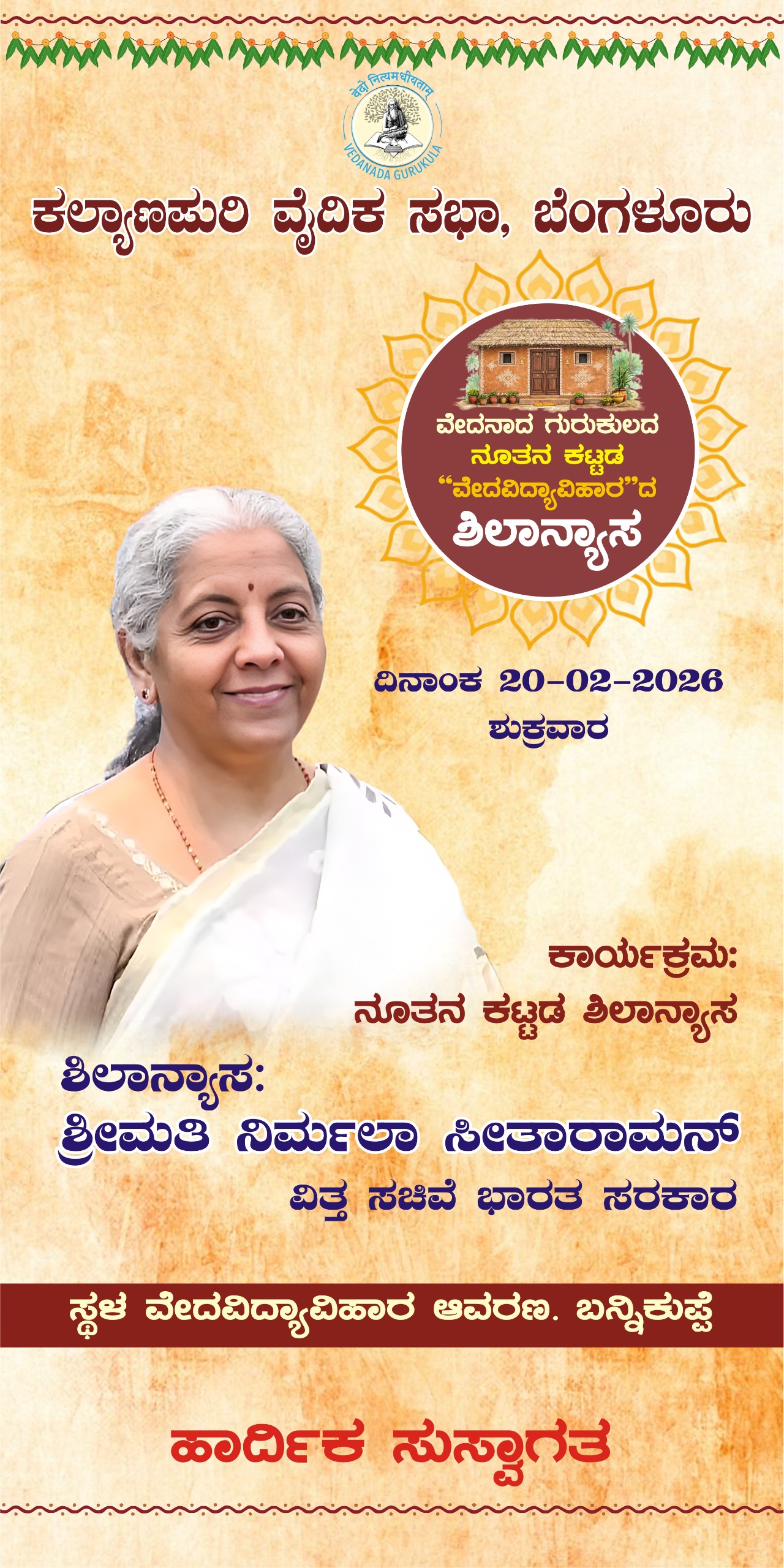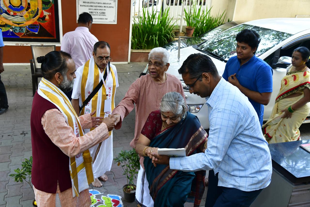 To acknowledge and reward the students of the Gurukula, a first of its kind Vedic Convocation Ceremony was held on May 15th, 2022 at Bharatiya Vidya Bhavan. The programme commenced with a beautiful musical performance by Neyveli Shri R Santhana Gopalan and group. This was followed by the welcoming of the chief guests on to the stage. The chief guests for the event were Hon. Smt. Nirmala Sitharaman, Finance Minister, Government of India, H.H. Yaduveer Krishnadatta Chamaraja Wadiar, Mysore, Prof. Sri. K.E.Devanathan, Vice-Chancellor, Sanskrit University, Karnataka. The convocation honoured 8 students in total of which 3 had completed 12 years at the Gurukula to attain the qualification of Ghanapaati. The event had speeches by the guests of honour and members of the Gurukula. Words of appreciation and encouragement were shared by the Chief Guest and concluded with a photo session of the students and guests of honour.