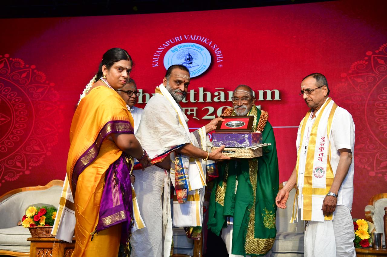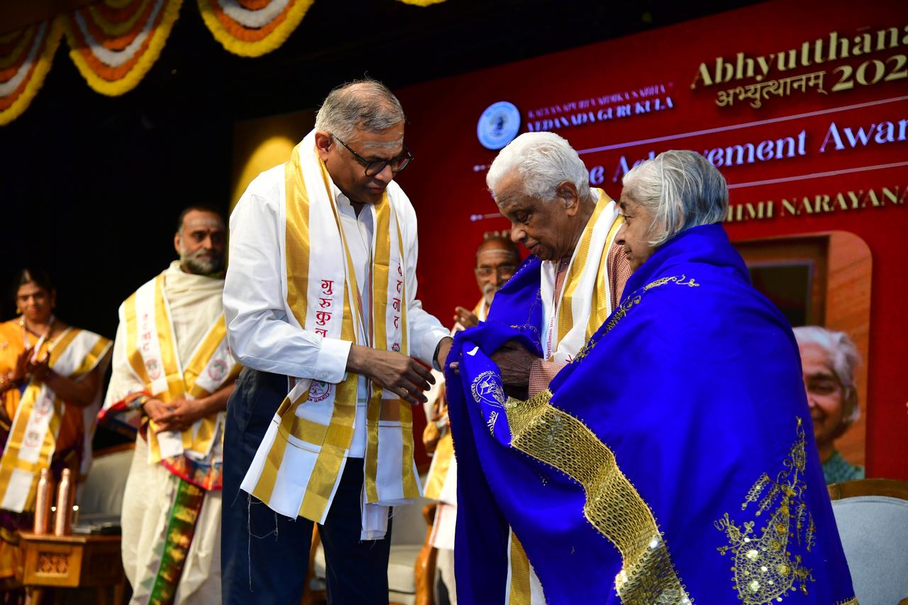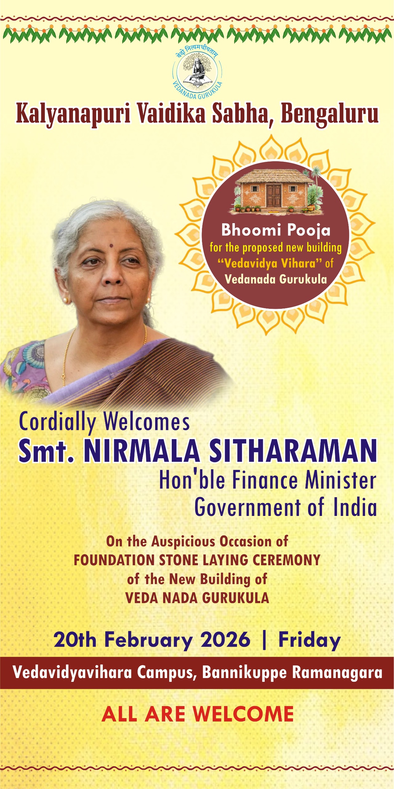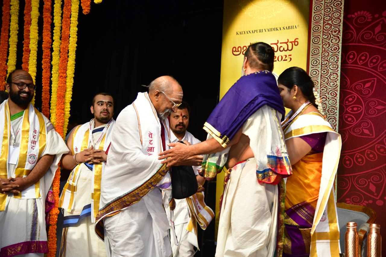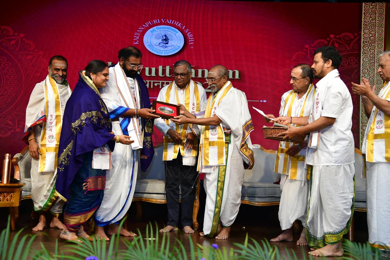 To acknowledge and reward the students of the Gurukula, a first of its kind Vedic Convocation Ceremony was held on May 15th, 2022 at Bharatiya Vidya Bhavan. The programme commenced with a beautiful musical performance by Neyveli Shri R Santhana Gopalan and group. This was followed by the welcoming of the chief guests on to the stage. The chief guests for the event were Hon. Smt. Nirmala Sitharaman, Finance Minister, Government of India, H.H. Yaduveer Krishnadatta Chamaraja Wadiar, Mysore, Prof. Sri. K.E.Devanathan, Vice-Chancellor, Sanskrit University, Karnataka. The convocation honoured 8 students in total of which 3 had completed 12 years at the Gurukula to attain the qualification of Ghanapaati. The event had speeches by the guests of honour and members of the Gurukula. Words of appreciation and encouragement were shared by the Chief Guest and concluded with a photo session of the students and guests of honour.