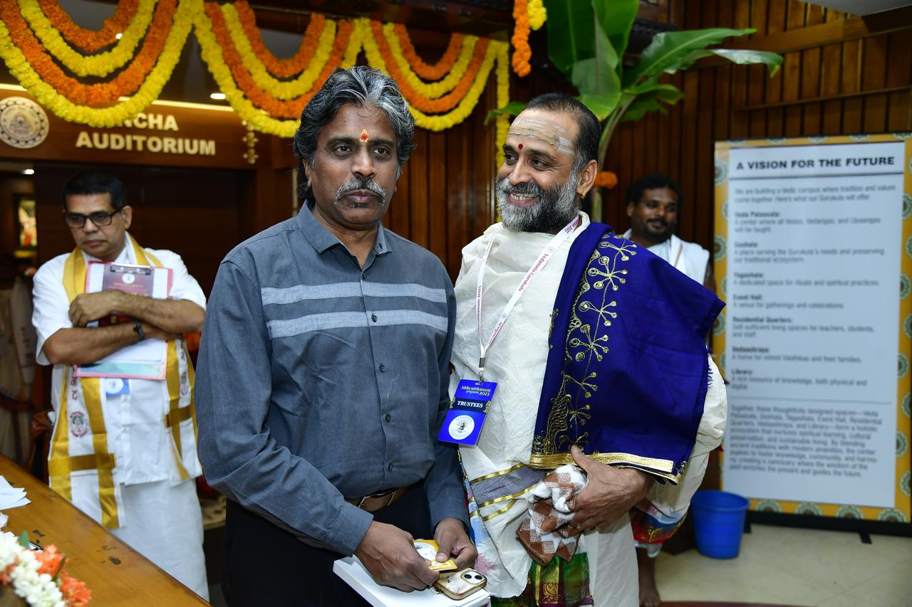 Members of Vedanada Gurukula and students recently sought the blessings of the revered Kanchi Jagadguru Sri Sankara Vijayendra Sarasvathi Svamigal. The visit aimed to receive spiritual guidance and blessings from the esteemed religious leader. The scholars and students, recognizing the profound wisdom and knowledge possessed by the Jagadguru, sought his blessings to enhance their understanding of Vedic scriptures and deepen their spiritual practice. The visit was an opportunity for them to express their reverence and seek the Jagadguru’s divine guidance on their spiritual journey.